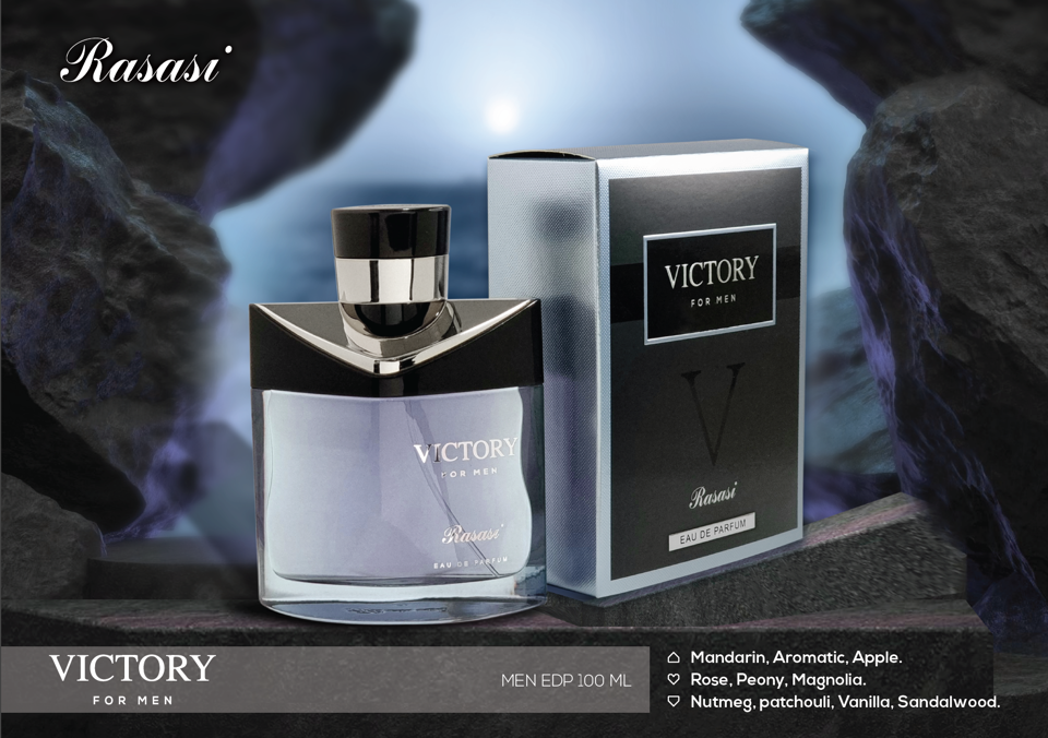 Victory For Men by Rasasi is a Floral fragrance for men. This is a new fragrance. Victory For Men was launched in 2023. Top notes are Mandarin Orange and Apple; middle notes are Rose, Magnolia and Peony; base notes are Sandalwood, Vanilla and Patchouli.